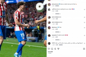 24直播网4月30日讯 马竞在本轮欧冠主场1-1战平阿森纳,阿尔瓦雷斯点射扳平比分。