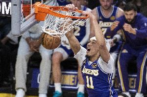 24直播网4月22日讯 NBA季后赛首轮,湖人主场101比94再胜火箭,系列赛大比分2比0领先。