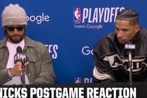 24直播网4月21日讯 NBA季后赛G2,尼克斯主场106-107遭老鹰逆转,大比分1-1战平,赛后布伦森和哈特接受了媒体采访,以下为采访全文。