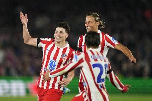 24直播网4月30日讯 马竞在本轮欧冠主场迎战阿森纳,阿尔瓦雷斯点射扳平比分。